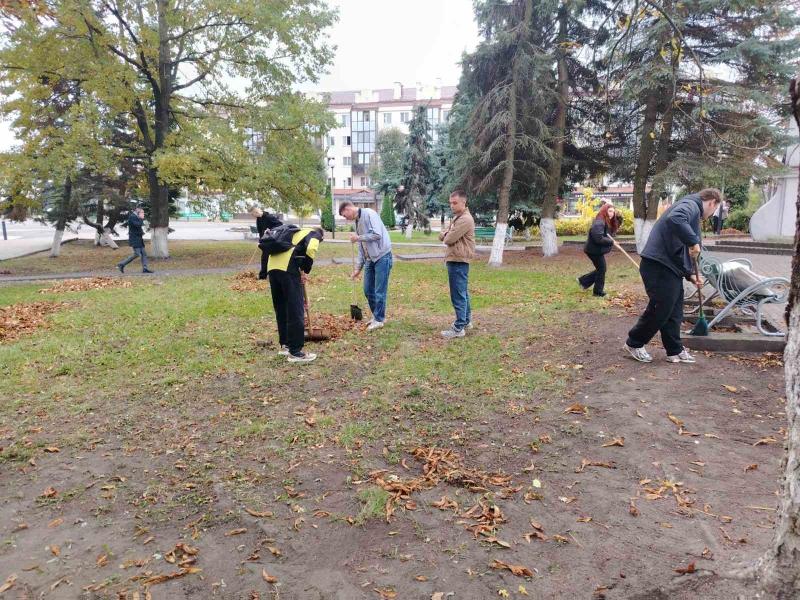 24 октября 2025 г. первичная организация ПолесГУ Пинской ГО РОО «Белая Русь» (председатель старший преподаватель кафедры социально-гуманитарных дисциплин Макарушко В.В.) в рамках республиканской акции «Белая Русь» – украшает Беларусь!» традиционно приняла активное участие в наведении порядка на территории сквера в честь 900-летия Пинска.