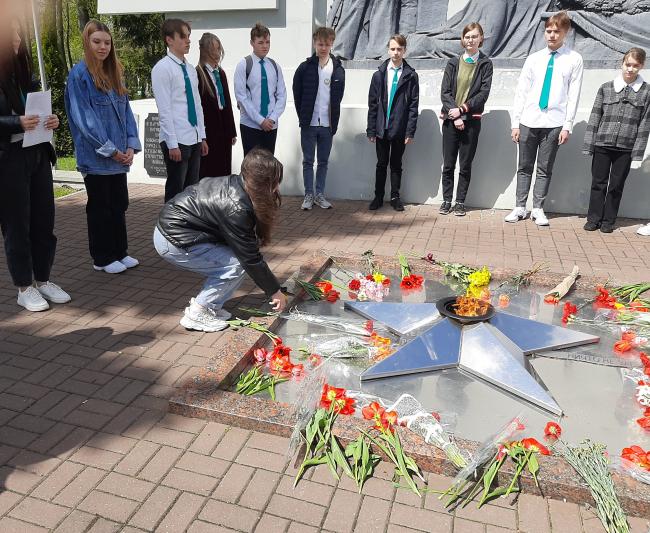 «Никто не забыт, ничто не забыто». Под таким названиям накануне государственного праздника Дня Победы у мемориального комплекса освободителям Пинска в городском парке культуры прошел митинг-реквием для лицеистов 10 «А» класса. Ребята услышали рассказ учителя истории Цубы Михаила Викторовича о боях на территории Пинска и Пинского района. Лицеисты прочли стихотворение Роберта Рождественского «Реквием» (Вечная слава героям). Закончился митинг возложением цветов к Вечному огню и минутой молчания.