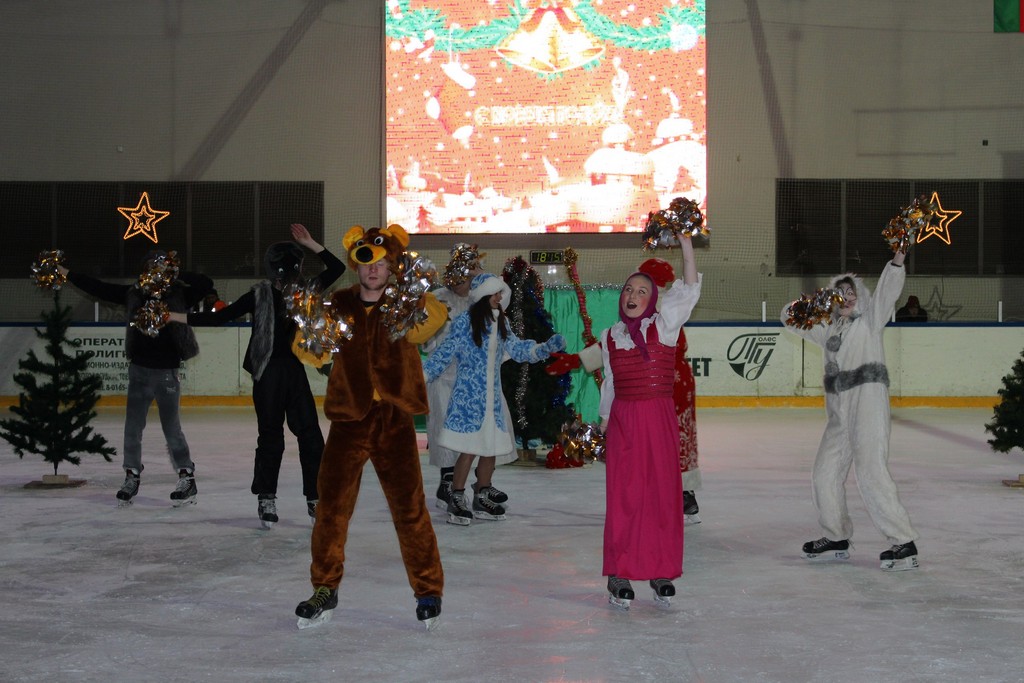 В продолжении праздника студенты университета подготовили сказочное представление на льду, где ребята смогли встретить героев мультфильма «Маша и Медведь», а так же волшебную фею Динь-динь.