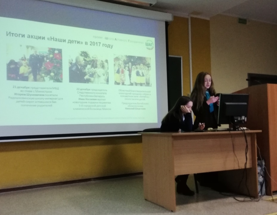 20 декабря в лицее прошел единый день информирования по теме «Будущее Беларуси – это мы!». Используя материалы, представленные Белорусским телеграфным агентством, инициативной группой учащихся 10 «Б» класса подготовлена мультимедийная презентация. Ведущие Лукашик Юля и Муравейко Наталья в ходе проведения мероприятия обратили внимание присутствующих на то, какую поддержку оказывает государство и общество каждому ребенку, на поддержку молодых талантов и многодетных семей. Особый интерес вызвало обсуждение темы «Детское Евровидение-2018». В ходе проведения единого дня информирования участники не только получили информацию, но и смогли в ходе дискуссии проанализировать ее.