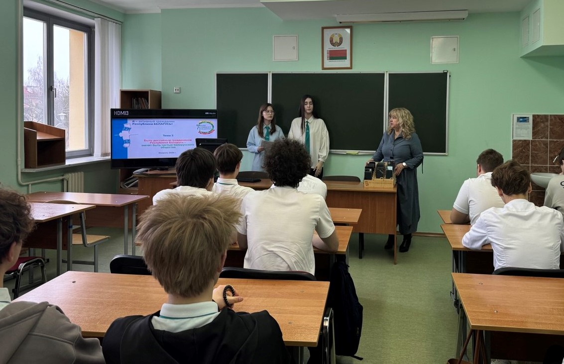 Учащиеся других классов в формате открытых диалогов вместе со своими классными руководителями обсудили предложенную тему. В фокусе обсуждения были вопросы: «Что значит быть патриотом сегодня?» и «Как созидательный труд способствует процветанию Беларуси?». Учащиеся вместе с классными руководителями обсудили, какой вклад молодое поколение может внести в развитие страны и почему порядок и ответственность являются основой экономической безопасности государства.