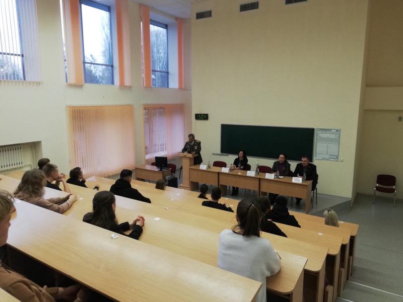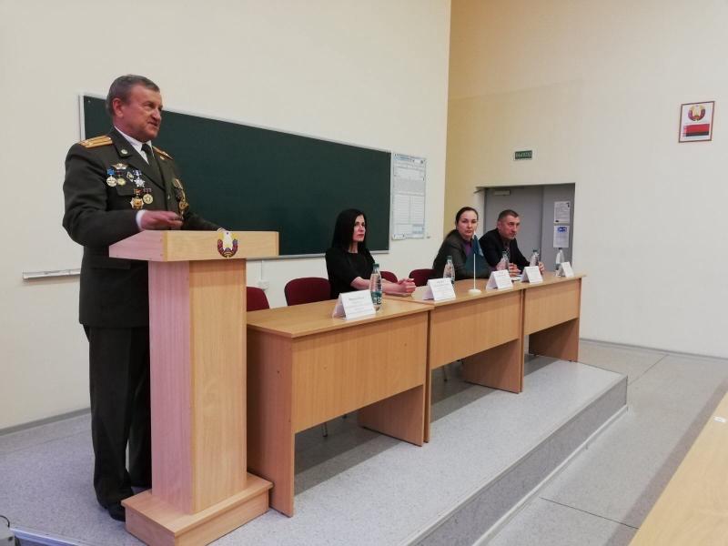 20 апреля на встречу со студентами был приглашен депутат Пинского городского Совета депутатов, делегат шестого Всебелорусского Народного Собрания, председатель Пинской городской организации общественного объединения «Белорусский союз офицеров», подполковник в отставке Юрий Яковлевич Пичугин.