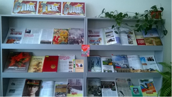 В читальном зале № 2 (учебный корпус №3) ко Дню защитника Отечества экспонируется книжно-иллюстративная выставка «Слава тебе, солдат!». Материалы выставки – книжно-журнальные издания из фонда библиотеки представлены в разделах: «История Отечества», «Щит Отечества», «Есть такая профессия – Родину защищать», «Наука побеждать».