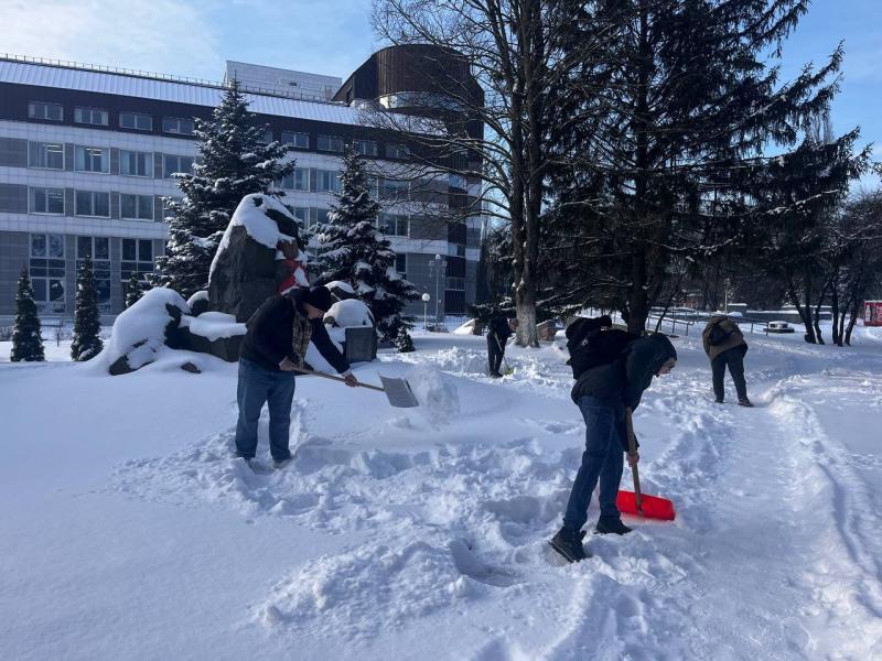 В городском парке у Памятного знака воинам‑интернационалистам активисты БРСМ ПолесГУ очистили от снега прилегающую площадку, обеспечив свободный доступ к месту памяти.