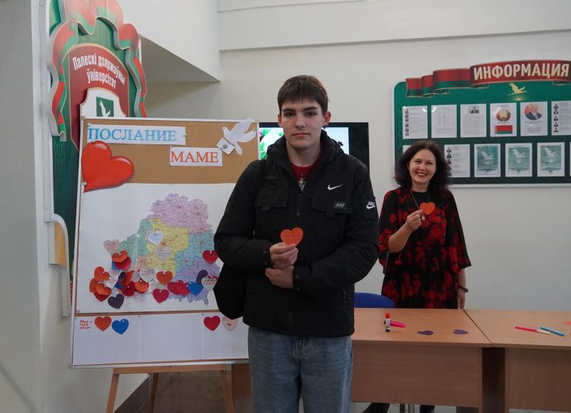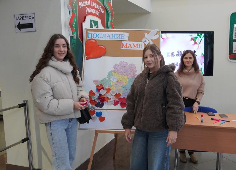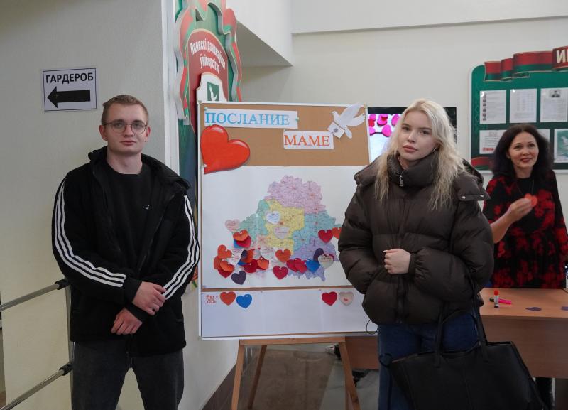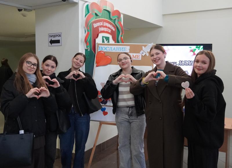 А ещё это замечательный повод сделать приятно дорогому человеку: признаться в любви, поблагодарить за любовь, заботу, поддержку, порадовать букетом цветов, подписать открытку с трогательными пожеланиями. Такой возможностью воспользовались студенты Полесского государственного университета, принявшие участие в акции "Послание маме".