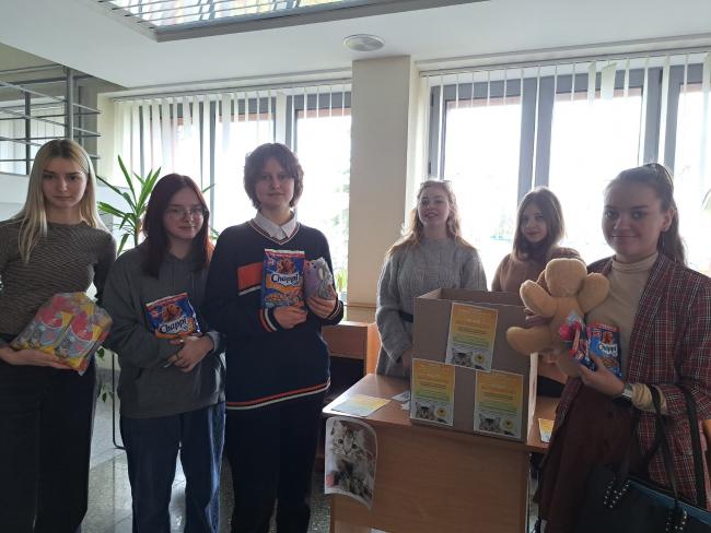 23 марта учащиеся лицея приняли участие в акции учреждения по защите животных "Преданность другу". Учащиеся собрали сухой и жидкий корм для кошек и собак. Спасибо всем, кто не остался равнодушным.