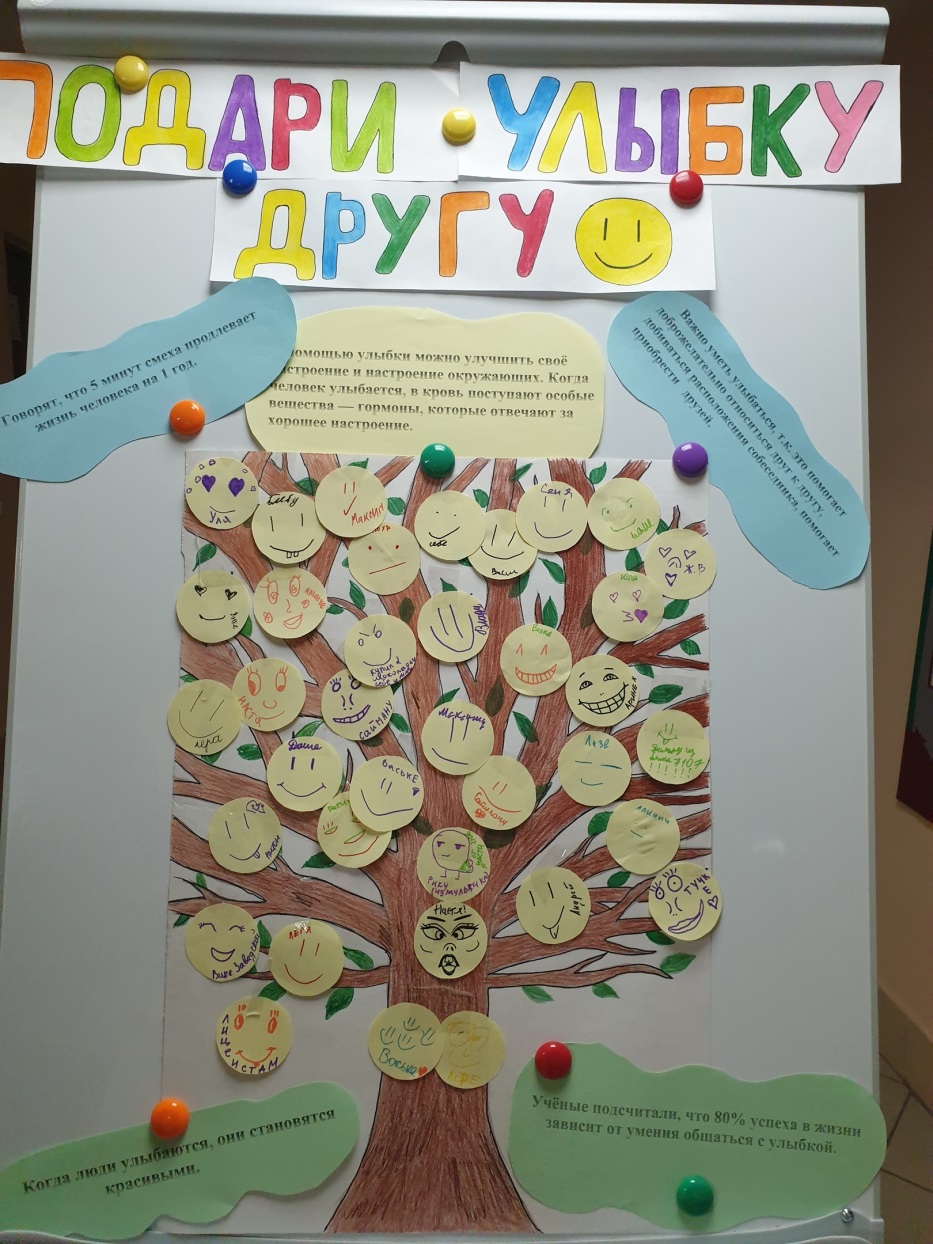 16 ноября в общежитии прошла акция "Подари улыбку другу". Лицеисты участвовали в шуточном розыгрыше, рисовали смайлики своим друзьям и прикрепляли их на дерево дружбы.