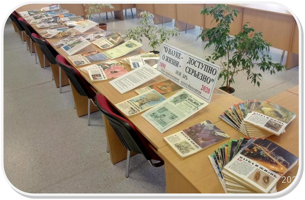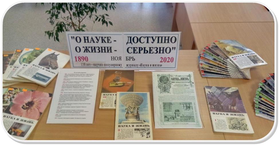 Автоматическая фокусировка. Хорошо это или плохо? Пандемия гриппа. Откуда она? Опасен ли сотовый телефон для здоровья? Кто открыл ДНК? Сколько весит интернет?  Падают ли звезды с неба?...  Ответы на такие вопросы вы найдете в разных номерах научно-популярного журнала «Наука и жизнь», которому в октябре 2020 года исполнилось 130 лет.  По этому случаю в читальном зале библиотеки (учебный корпус №3, к. 3332) организован открытый просмотр «О науке – доступно, о жизни – серьезно», где представлены номера журнала с 1982 года выпуска, которые выписывала библиотека