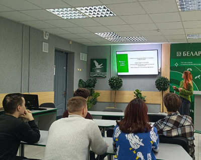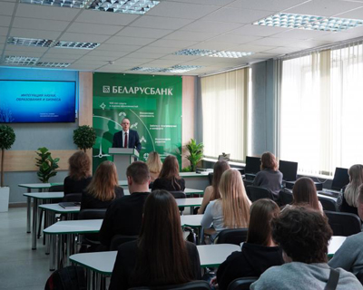 17 ноября для студентов факультета экономики и финансов был организован образовательный семинар от ОАО «АСБ Беларусбанк». Начальник отдела развития корпоративного бизнеса Центра банковских услуг по городу Пинску Кисель Сергей Николаевич презентовал возможности банка по поддержке предпринимательской инициативы молодежи. Кандидат экономических наук, доцент, заведующий кафедрой социально-гуманитарных дисциплин Рыбалко Юлия Александровна выступила с лекцией «Интеграция науки, образования бизнеса».