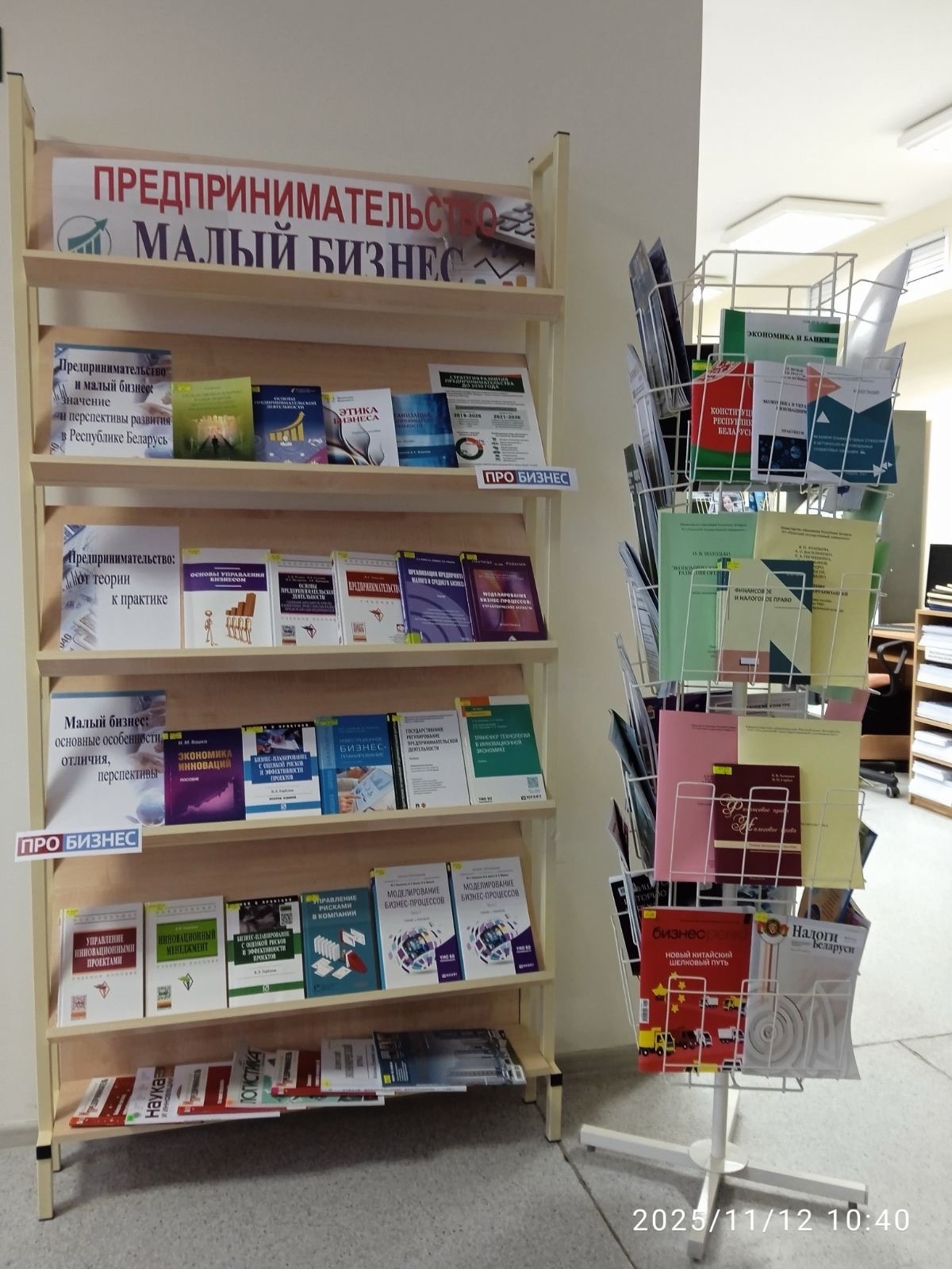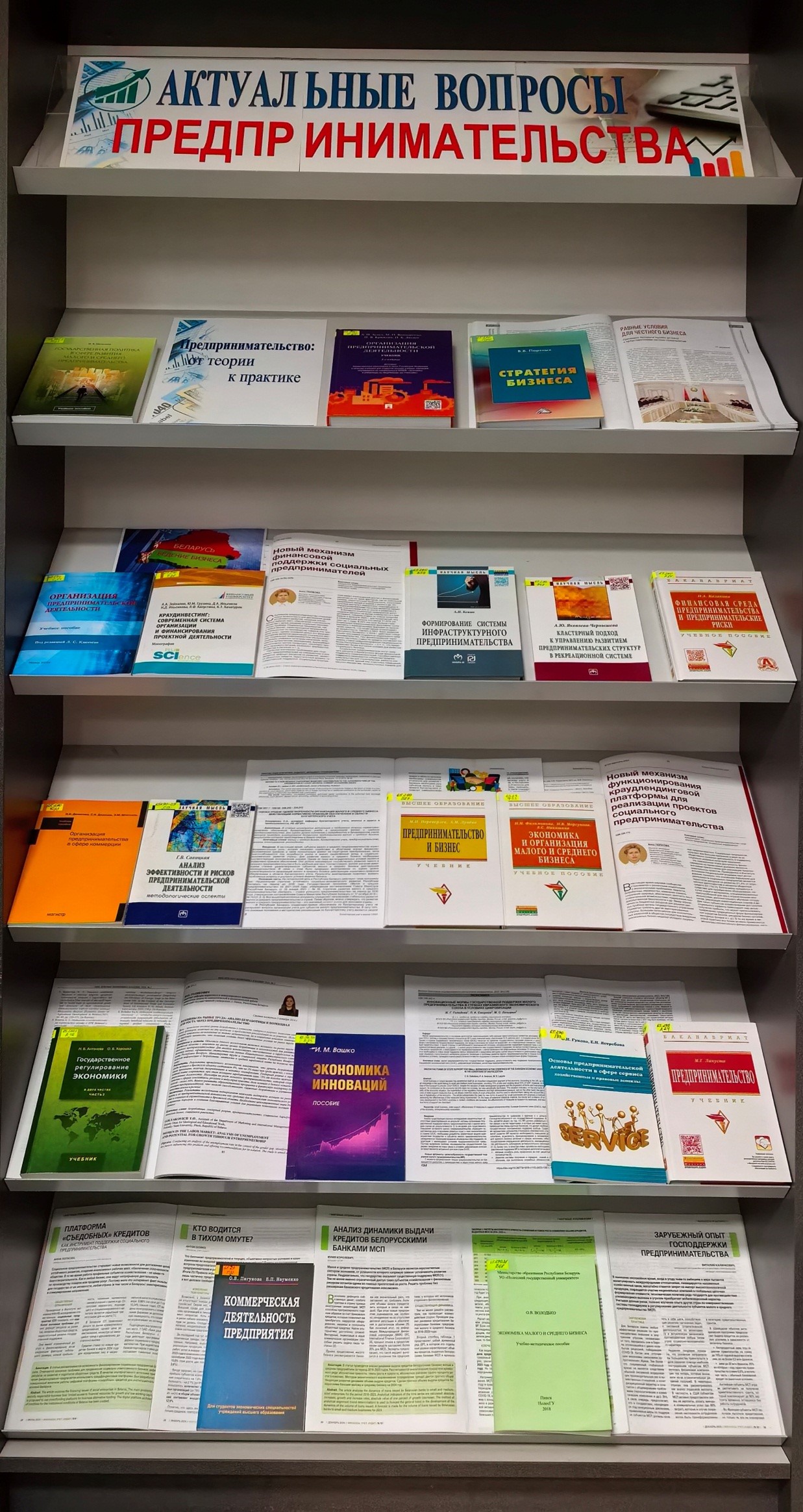 К этой дате в читальных залах библиотеки оформлены книжные выставки «Предпринимательство и малый бизнес», «Актуальные проблемы предпринимательства» (учебный корпус № 3, ул. Пушкина, 4, ауд. 3332 и учебный корпус № 1, ул. Кирова, 24). Здесь представлена литература, где рассматриваются самые разные аспекты бизнеса и предпринимательства, проблемы становления малого и среднего бизнеса, состояние рынка труда, учебники по основам бизнеса.