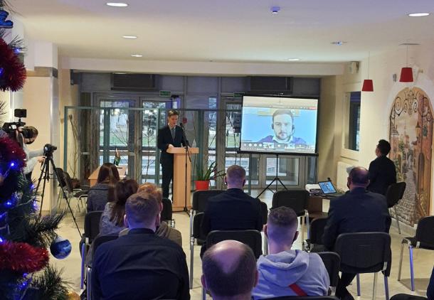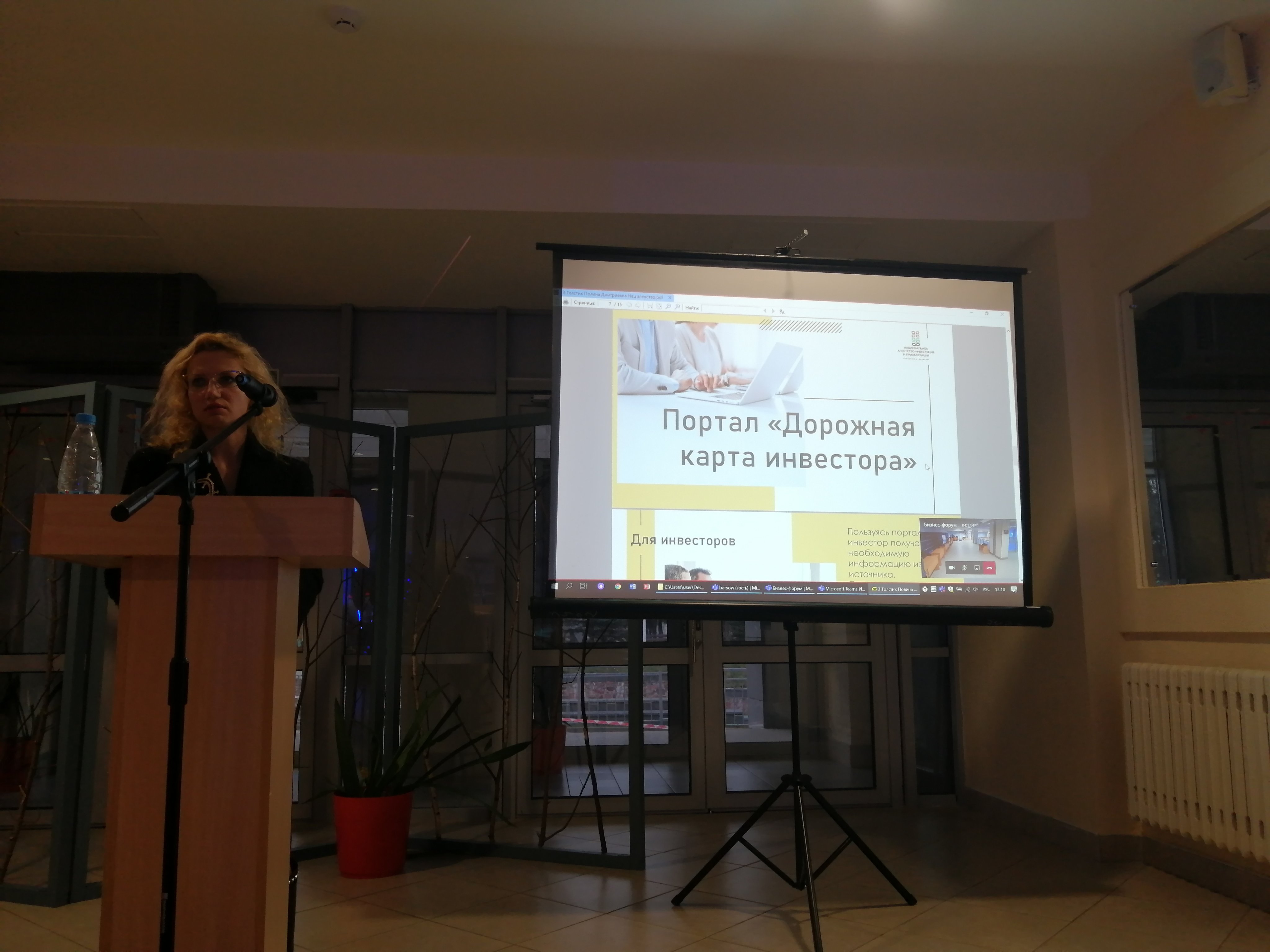В Полесском государственном университете проходит бизнес-форум. Козырь А.В., директор «Технопарк «Полесье», обратился к гостям мероприятия с приветственным словом, после чего выступили зарубежные участники форума, представив свои проекты в онлайн режиме (Хенрик Барсов с проектом «Суда на водородном топливе»). Затем гостям была представлена экспозиция с разнообразными проектами. Полесский государственный университет представил свои разработки, среди которых: «ВИРТУАЛЬНЫЙ ОБРАЗОВАТЕЛЬНЫЙ ЦЕНТР», проект по созданию плантаций павловнии, программа для подсчета оптимального рациона крупного рогатого скота, был представлен проект по разведению клариевого сома, а также показан опытный образец озонатора. ОАО «Кузлитмаш» представил проект « Разработка и освоение производства новой линейки механических прессов точной штамповки усилием до 250 тонн», Пинский хлебозавод - проект о продлении срока годности хлебобулочных и кондитерских изделий натуральным способом. Представители фермерского хозяйства «Беркли» презентовали навесной гербицидный опрыскиватель, торфопредприятие «Глинка» представило свою продукцию.