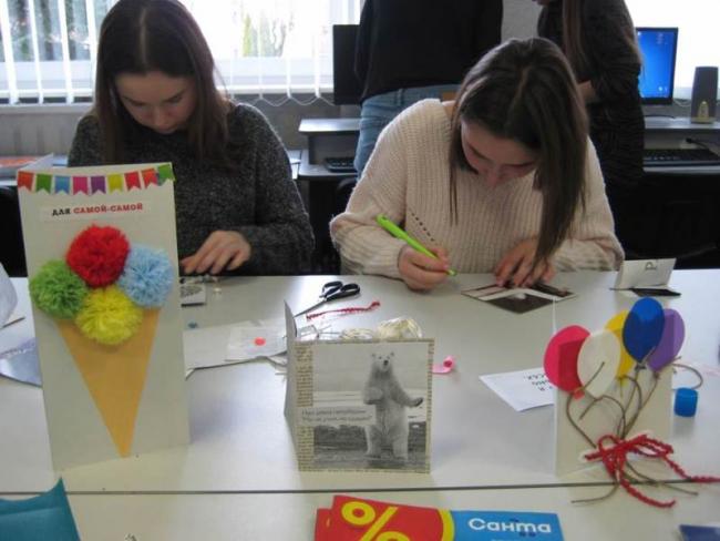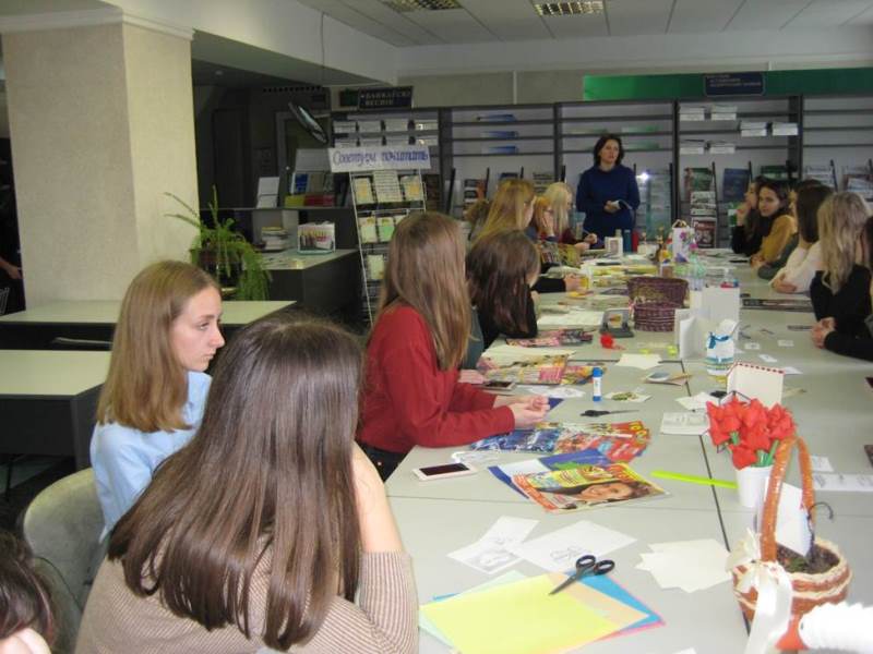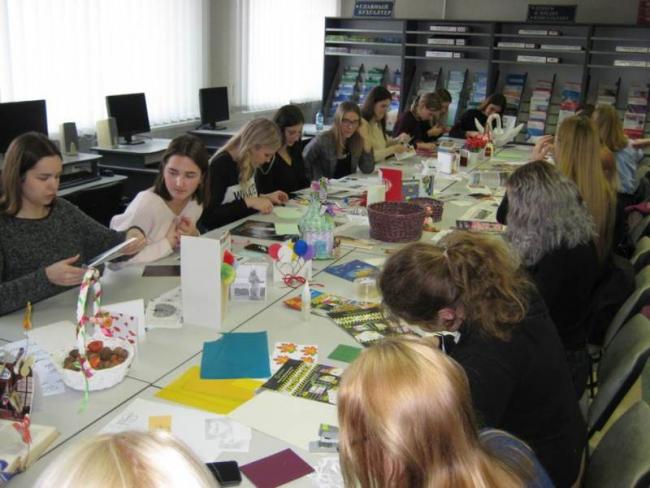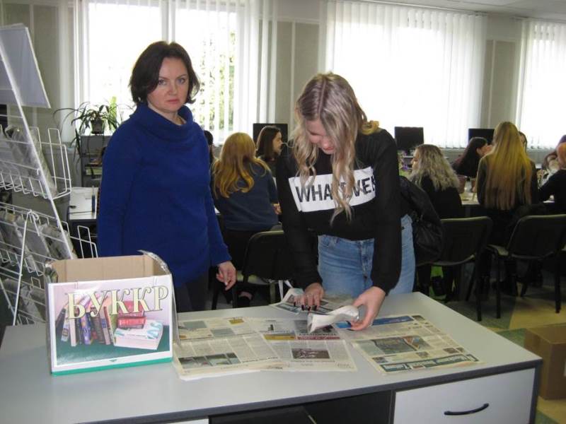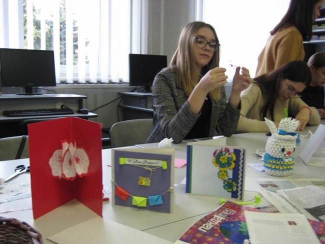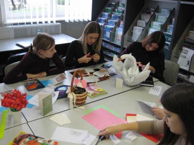 12 ноября в читальном зале библиотеки учебного корпуса №1 собрались студенты группы 19 ЛМК-1 на увлекательную программу «Бумажный бум», посвященную Международному дню экономии и сбережений и Международному дню без бумаги. Сотрудники, преподаватели и студенты университета представили свои творческие работы из бумаги: открытки, цветы, корзинки, различные упаковки. Библиотекарь Елена Павловна Дорошенко на примере показала самые простые способы экономии, в том числе и бумаги, которые могут применяться в быту, студенты узнали о принципах и способах сохранения электроэнергии и природных ресурсов. Неподдельный интерес вызвал просмотр видео ЛайфХак «10 идеальных способов как сэкономить деньги». Вместе со своим куратором Панковец Алиной Викторовной студенты приняли участие в мастер-классе по изготовлению подарочных открыток. Используя простые подручные материалы, собственную фантазию, креативные идеи, девушки и парни увлеченно и с удовольствием мастерили открытки. Что-то оставили себе на память, а часть открыток подарили куратору. Участие в мастер-классе доставило всем большое удовольствие.