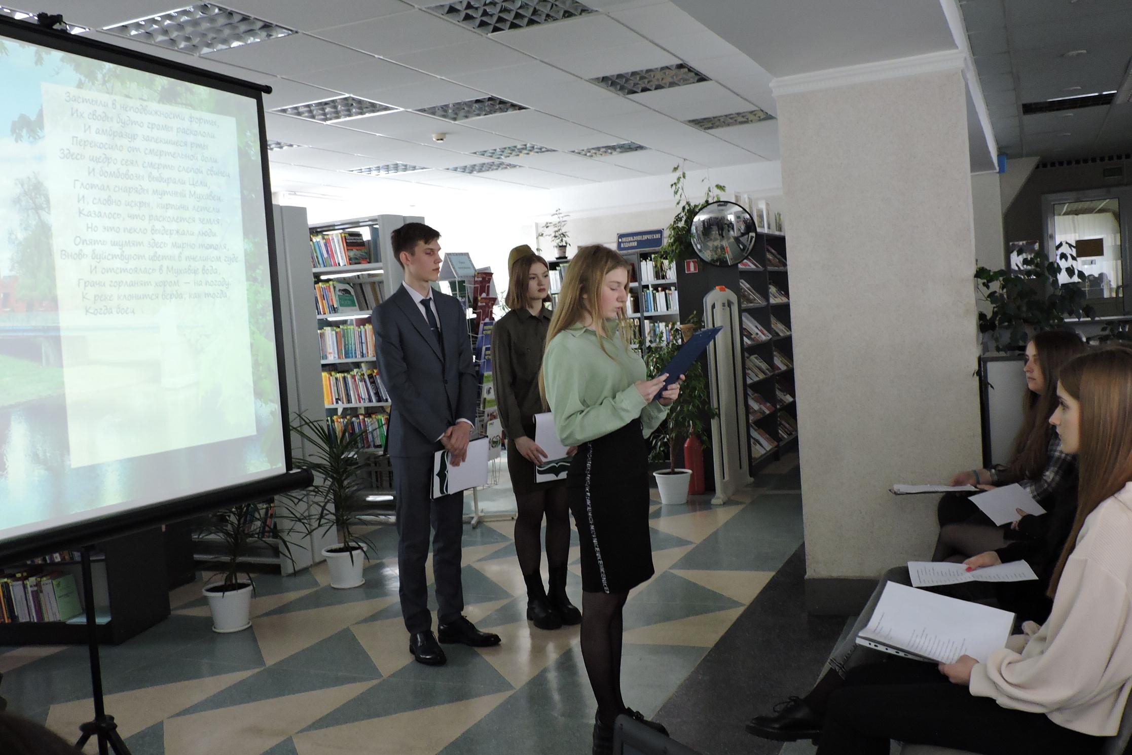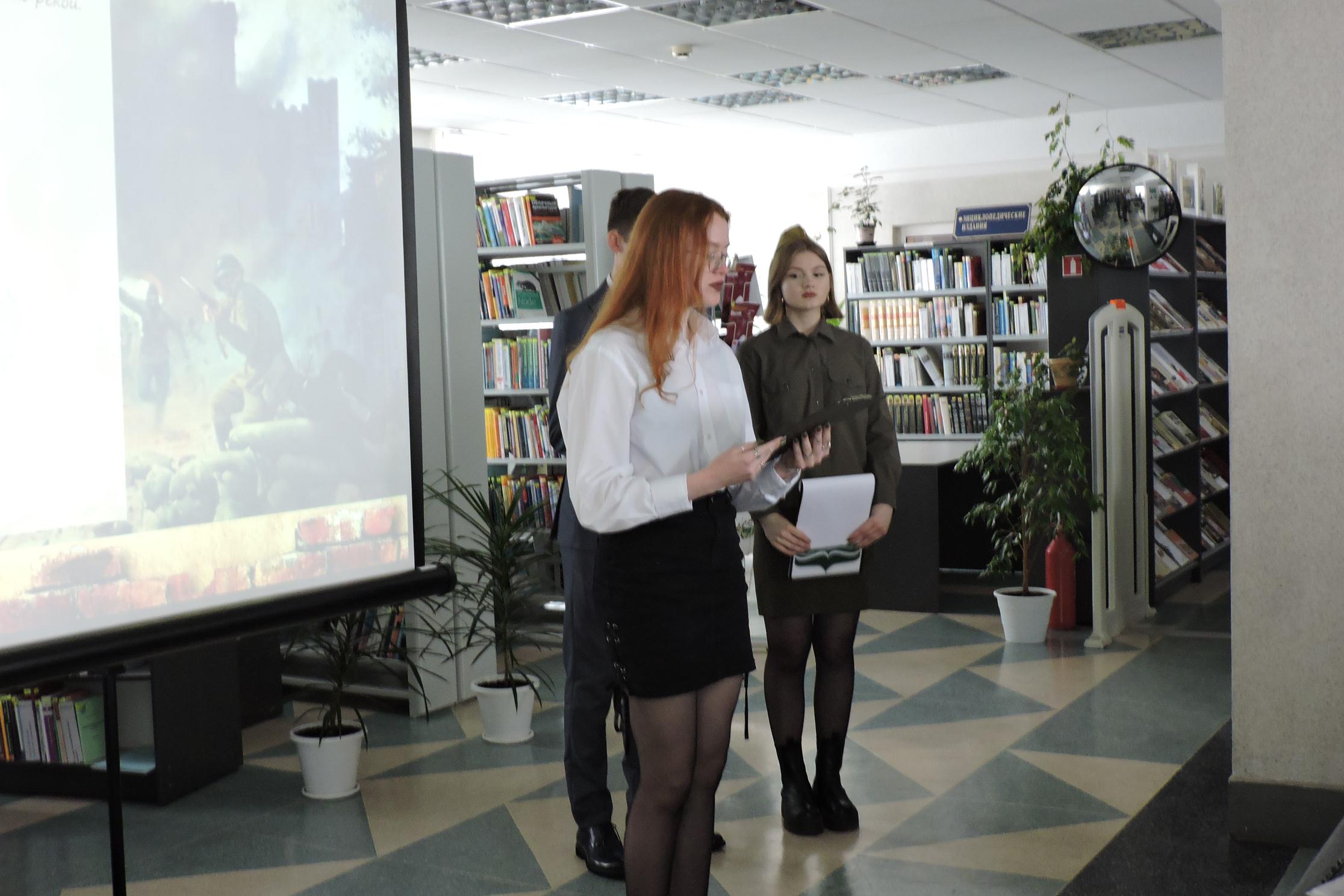 В преддверии праздника Дня Победы 3 мая в читальном зале библиотеки в учебном корпусе №1 состоялся час памяти «Война. Победа. Память», участниками и гостями которого стали студенты факультета экономики и финансов групп 21Ф-1, 21БД-1, 20Ф-1. Ведущие мероприятия Мороз Марк и Чупринская Карина (группа 21Ф-1) напомнили девушкам и юношам о событиях тех страшных дней войны, которые происходили на территории Беларуси. С большим интересом гости мероприятия вспомнили героическую защиту Брестской крепости, подвиг партизан, трагедию Хатыни и те тяготы, которые выпали на долю матерей и мирного населения.