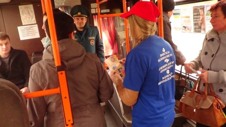 В ходе акции волонтеры не только проводили беседу с пассажирами городских автобусов на тему опасности пожаров и причинах их возникновения, но и раздавали памятки и другую наглядную агитацию.