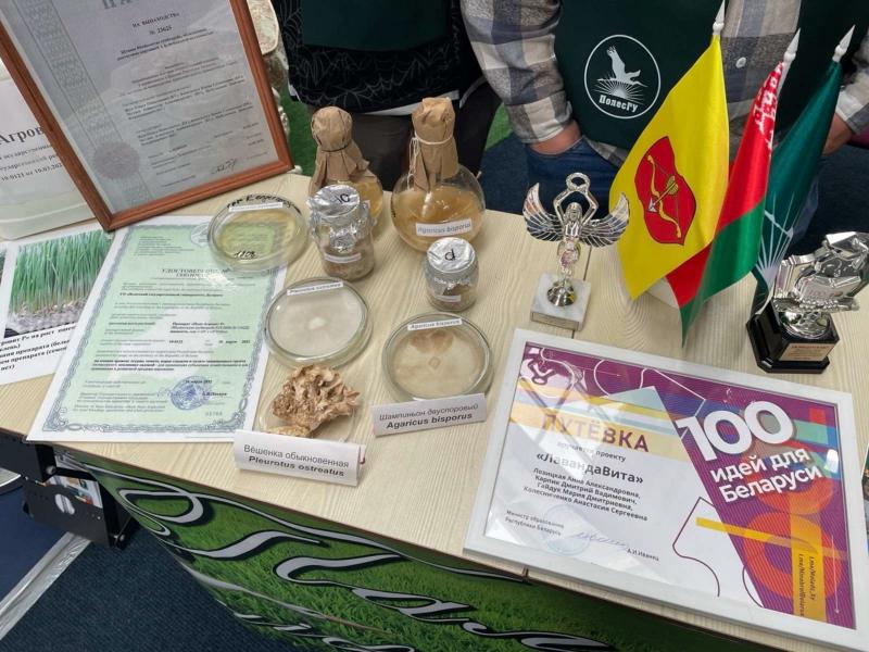 - посевной материал базидиальных грибов вешенки обыкновенной и шампиньона двуспорового, полученный методом глубинного культивирования, разработанный в рамках участия университета в региональной научно-технической программе «Инновационное развитие Брестской области», 2021-2025 годы».