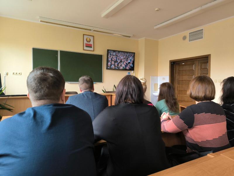 В Полесском государственном университете в онлайн-режиме был организован общественный просмотр онлайн-трансляции самого яркого политического события в стране, на котором присутствовали студенты, преподаватели, сотрудники университета.