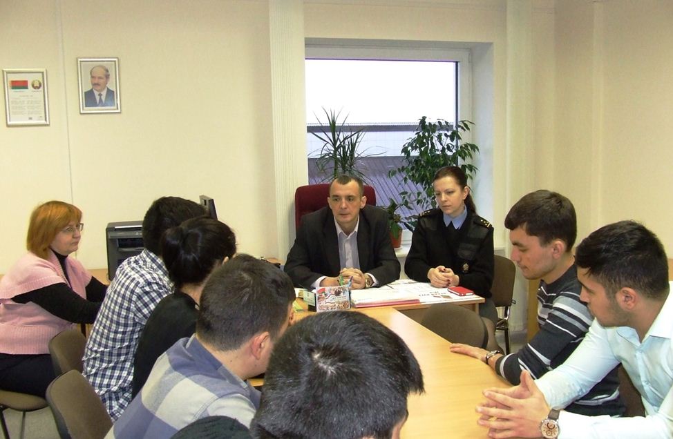 12 февраля 2015 года состоялась плановая встреча иностранных студентов с сотрудниками отделения по гражданству и миграции (ОГиМ). На встрече присутствовали студенты, инспектор пинского  ОГиМ Литвинчук Людмила Александровна и старший инспектор брестского ОГиМ Ровенский Вадим Васильевич, а также проректор по воспитательной работе ПолесГУ Соколова Светлана Николаевна и специалист по работе с иностранными студентами Киевич Елена Леонидовна.