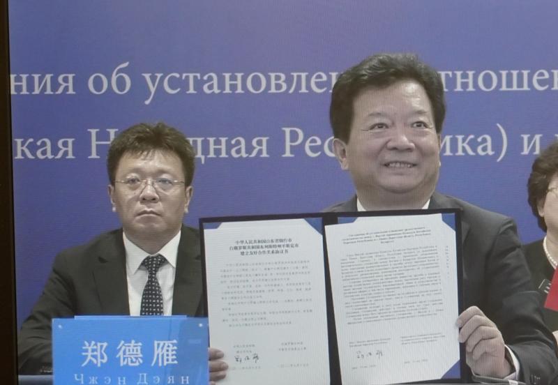 В ходе встречи подписано соглашение об установлении отношений дружественного сотрудничества между г. Яньтай (провинция Шаньдун, Китайская Народная Республика) и г. Пинск (Брестская область, Республика Беларусь).