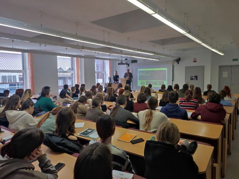 На биотехнологическом факультете 22 февраля 2024 года состоялась встреча студентов старших курсов с представителями реального сектора экономики ООО «Зубр Энерджи» по производству аккумуляторных батарей в г.Пинске: заместителем директора по качеству Матвиенко Александром Николаевичем и менеджером по персоналу Козак Ольгой Григорьевной.
