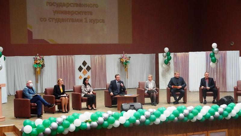 2 сентября ректорат университета встретился со студентами первого курса факультета экономики и финансов. На встрече присутствовали: ректор Дунай Валерий Иванович, проректор по учебной работе Золотарева Ольга Александровна, проректор по научной работе Кручинский Николай Генрихович, проректор по воспитательной работе Хмель Ольга Анатольевна, проректор Новик Андрей Константинович, проректор Заранко Михаил Михайлович, декан ФЭиФ Ржевская Татьяна Александровна и декан ФОЗОЖ Маринич Татьяна Владимировна.