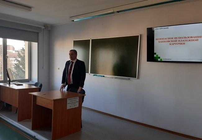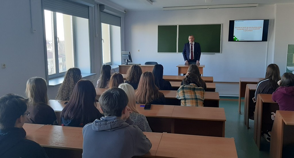 В доступной форме Андрей Витальевич объяснил учащимся правила безопасности использования платежных карт. Большой интерес у учащихся вызвала информация о том, как не стать жертвой обмана и сохранить личные деньги, о правилах цифровой безопасности. Представитель банка дал рекомендации по действиям при возникновении проблем с банковскими карточками, призвал держателей платежных карт ответственно относиться к их использованию.