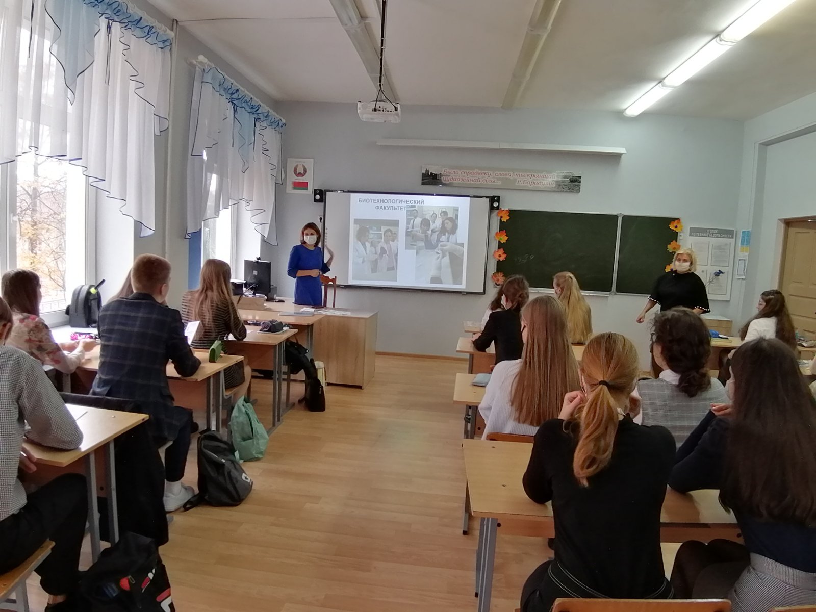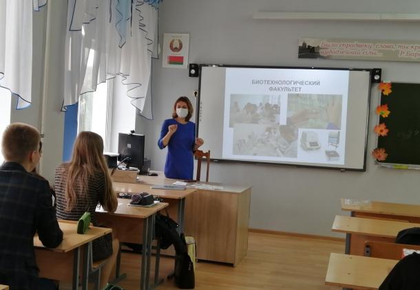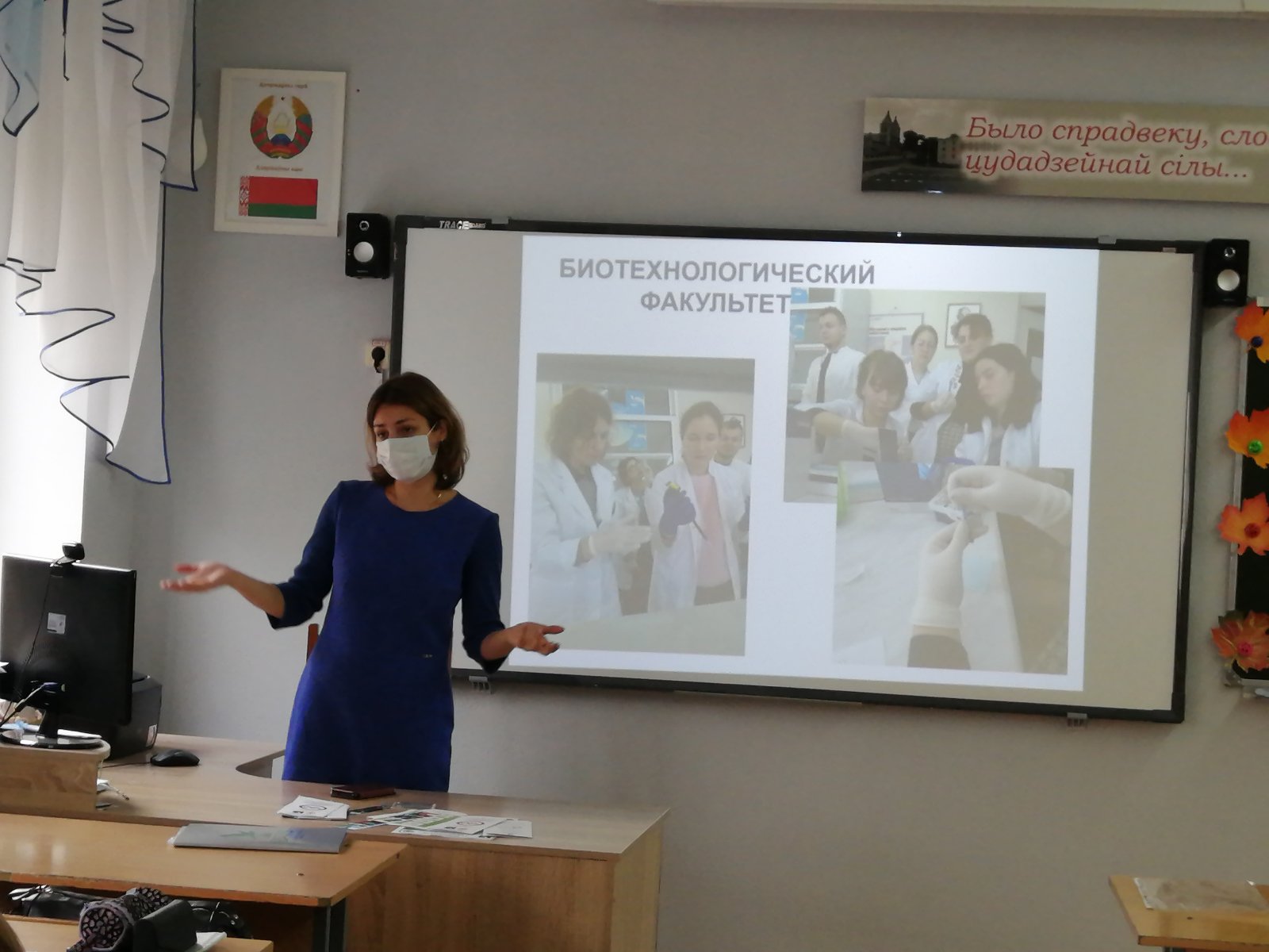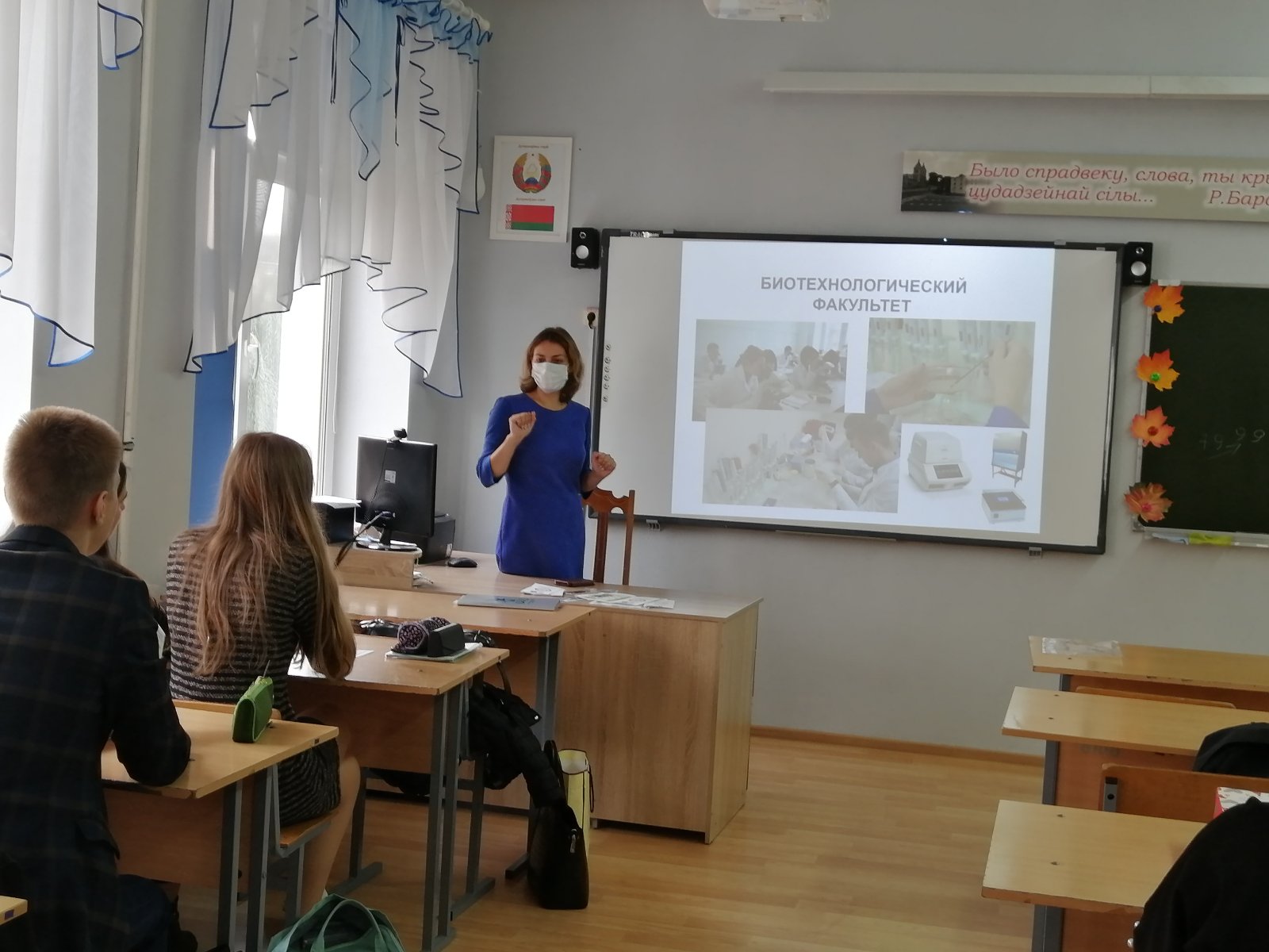 28.10.2020 г. была проведена профориентационная работа со школьниками в УО "Мозырский государственный областной лицей". Встречу провела доцент кафедры биотехнологии Воробьёва Мария Михайловна.