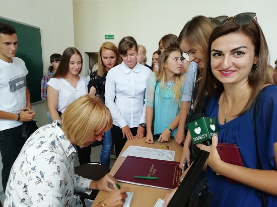 Екатерина Анатольевна оставила пожелания в книге Почётных гостей Полесского государственного университета. Студенты и преподаватели долго не отпускали знаменитую спортсменку, атакуя с просьбами сделать совместное фото, ответить на личные вопросы и получить заветный автограф.