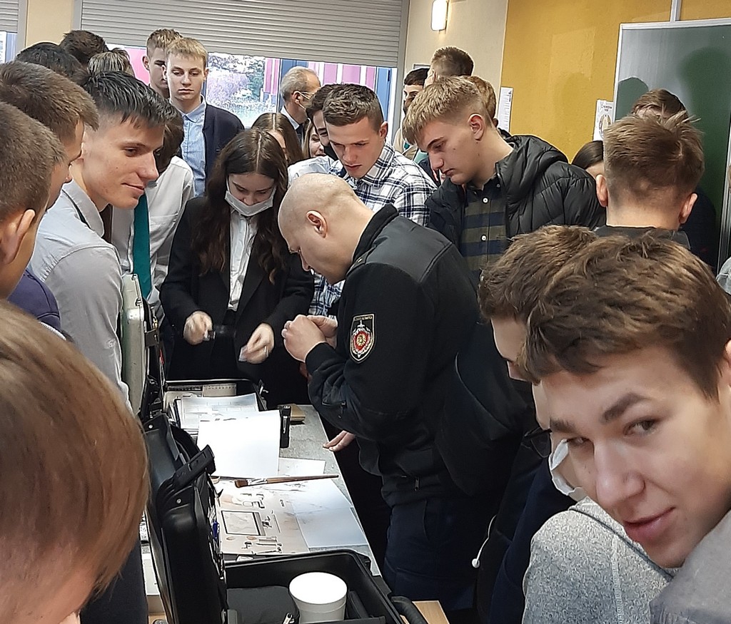 Перед лицеистами выступил начальник отдела Левкович Дмитрий Владимирович. В ходе встречи Дмитрий Владимирович рассказал об особенностях профессии, о том, где можно получить образование по данному профилю, о функциях и задачах, значимости судебно-экспертной деятельности в обществе. Учащиеся узнали о разнообразии проводимых экспертиз и современных методик. Сотрудниками отдела были продемонстрированы подходы к проведению некоторых экспертиз, что вызвало живой интерес у молодого поколения.