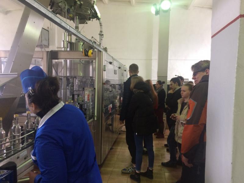 После краткого знакомства с продукцией предприятия преподавателям и студентам предоставили возможность ознакомится с процессом производства продукции. На предприятии установлена современная линия по розливу, коих в Республике Беларусь всего 4, включая линию в КУПП «Маньковичи».