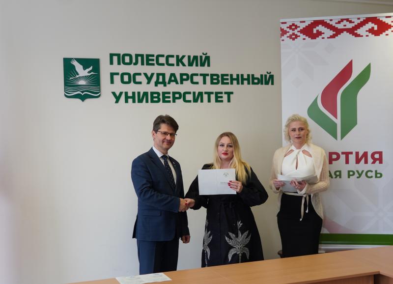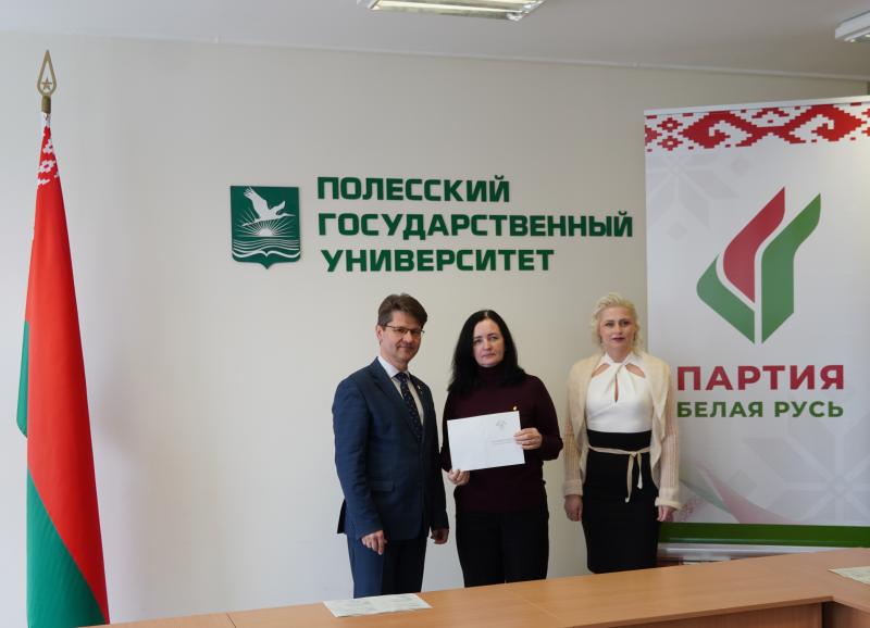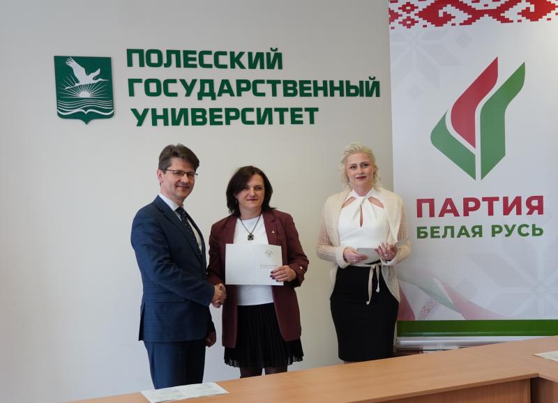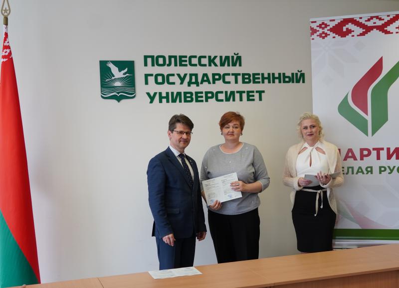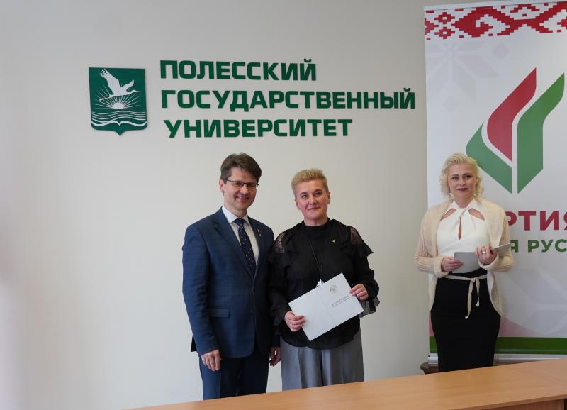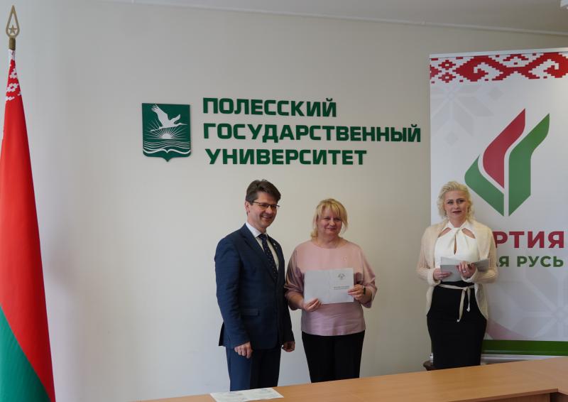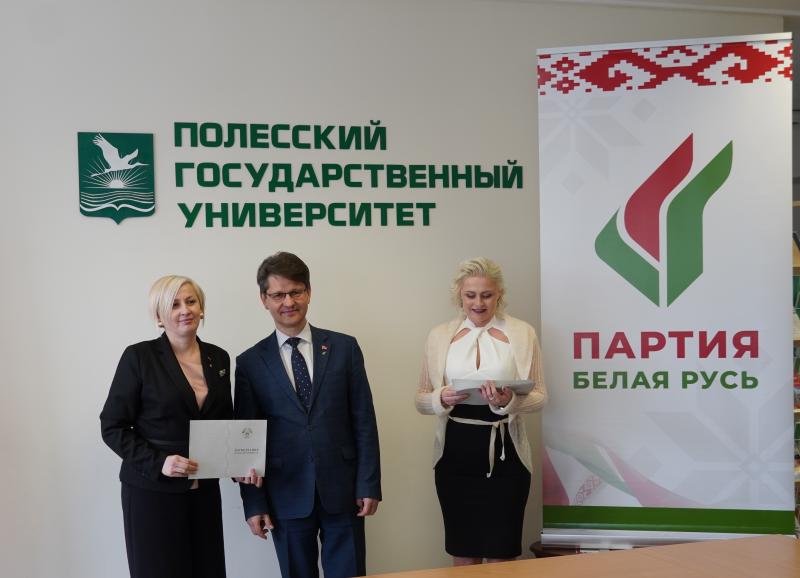 Декан факультета дополнительного образования Глинская Наталья Анатольевна отметила, что опыт, накопленный в стенах ПолесГУ, призван стать надежной основой для реализации будущих инициатив Пинского отделения партии.