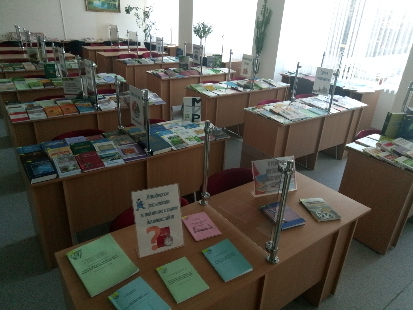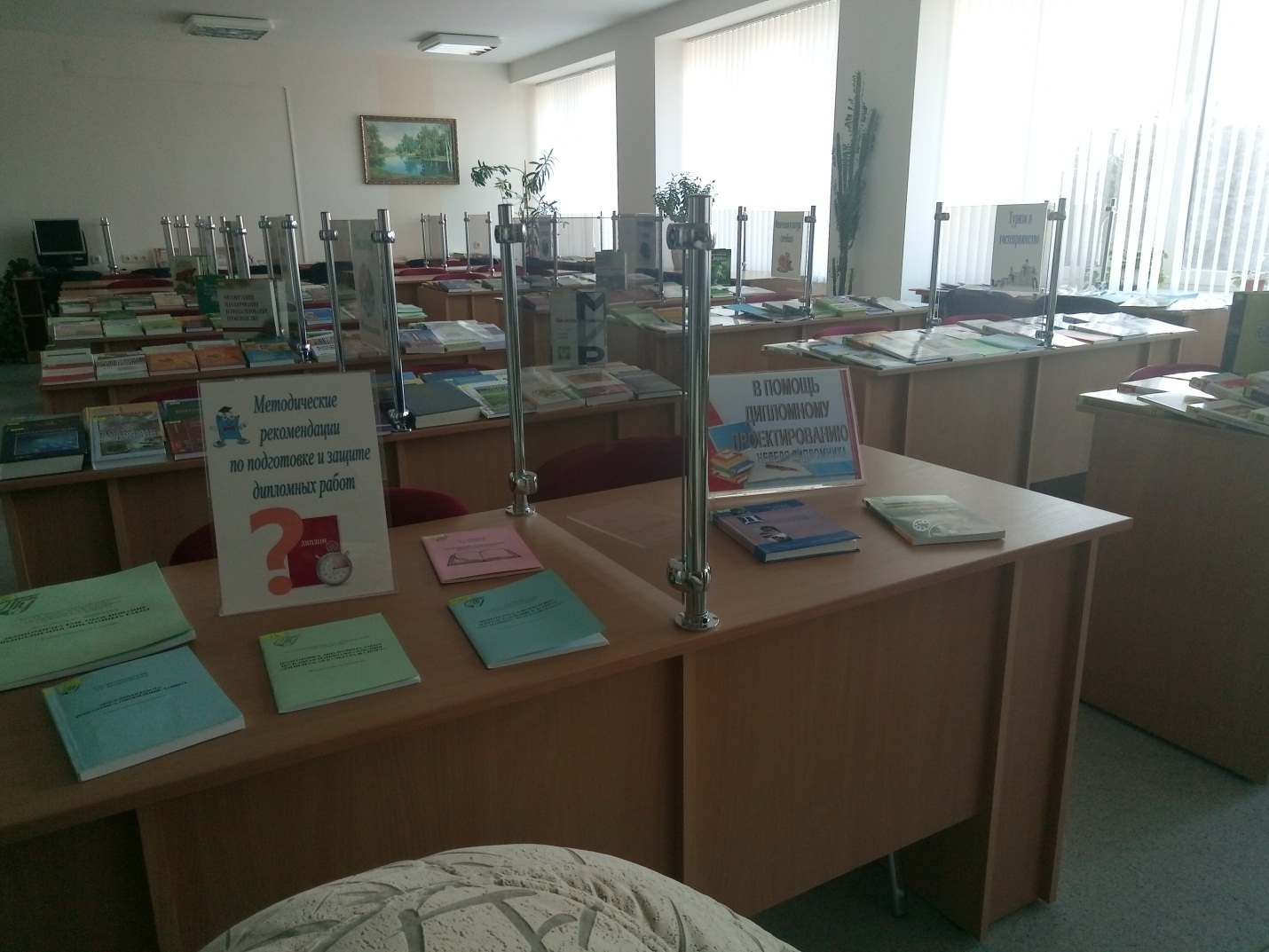 - тематическая выставка-просмотр учебников и учебных пособий по специальностям, научных изданий, методических пособий по написанию и оформлению дипломных работ, журналов, статистических сборников;
