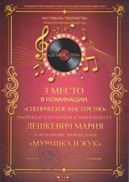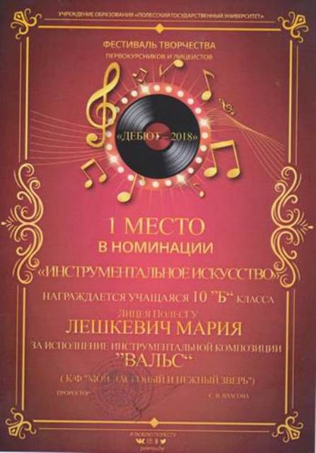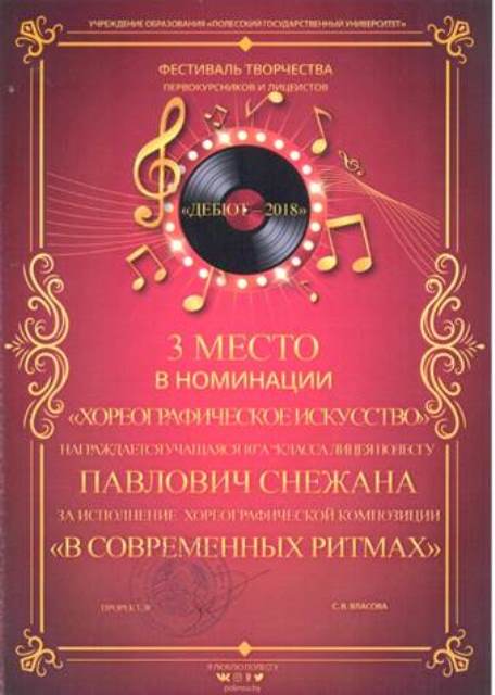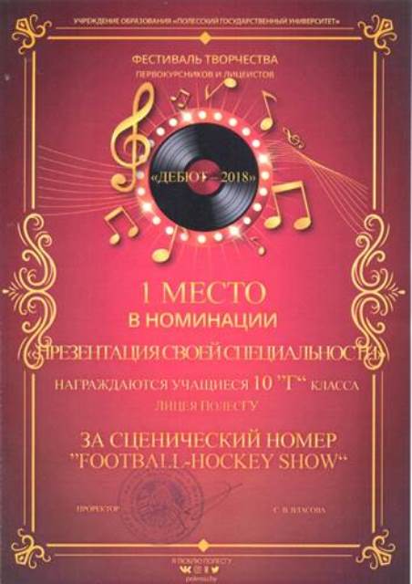 В качестве подарка для участников и гостей праздника из числа лицеистов выступили дипломанты фестиваля: Мария Лешкевич, Анастасия Жук, Снежана Павлович и коллектив специализированного по спорту 10 «Г» класса с номером «Football-hockey show».