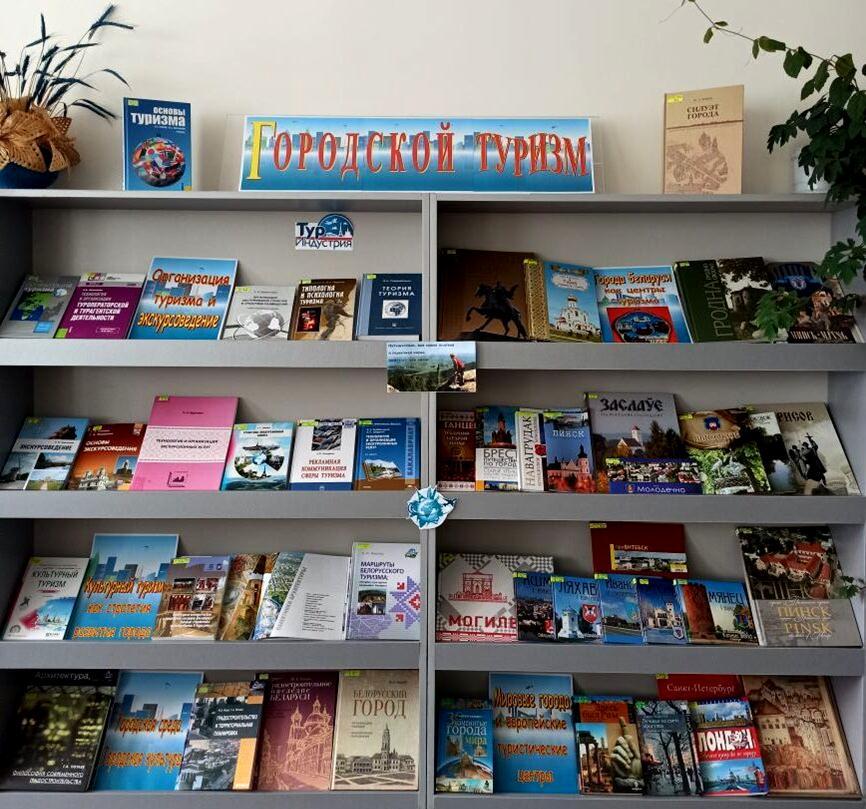Читальный зал библиотеки приглашает на выставку «Городской туризм». Здесь вы найдете учебники и учебные пособия по организации туризма, технологии и организации экскурсионных услуг, книги о самых красивых городах Беларуси, таких как Минск, Гродно, Могилев, Витебск, Брест, Несвиж и о городах мира – брендах туриндустрии. В рубрике «Культурный туризм как стратегия развития города» представлены книги по градостроительному наследию Беларуси и современному градостроительству.