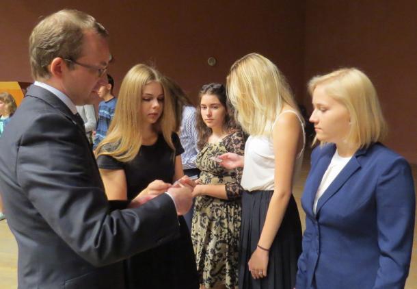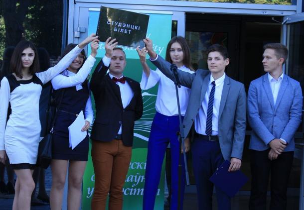 Студенты университета были удостоены права получить первый университетский документ из рук Заслуженного мастера спорта по тяжелой атлетике, серебряного призера Олимпийских игр в Афинах А.Е. Батюшко, Директора расчетного центра Национального банка Республики Беларусь Ф.Э. Касперовича, Начальника отдела по работе с персоналом филиала Белорусского республиканского унитарного страхового предприятия «Белгосстрах» в г.Бресте И.В. Приступчик, Заместителя директора по идеологической работе ГЛХУ «Пинский лесхоз» А.А. Селивона, врача-тренера Национальной сборной команды Беларуси по гребле на байдарках и каноэ Е.Г. Каллаур и других гостей вуза.