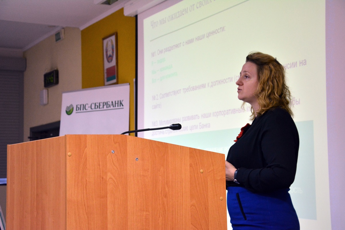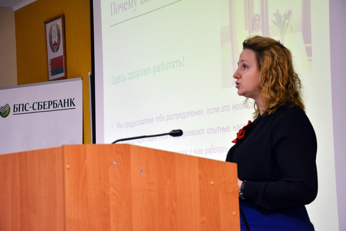 Данное мероприятие уже стало традицией. Ежегодно БПС-Сбербанк предлагает выпускникам стать их первым рабочим местом, овладеть ценными профессиональными навыками, получить уникальный практический опыт и воспользоваться перспективами карьерного роста.  Сотрудники банка ознакомили присутствующих с Миссией и ценностями ОАО БПС-Сбербанк, основными тенденциями финтеха кредитного учреждения, обсудили со студентами вопросы прохождения практики и трудоустройства, ответили на их персональные вопросы.