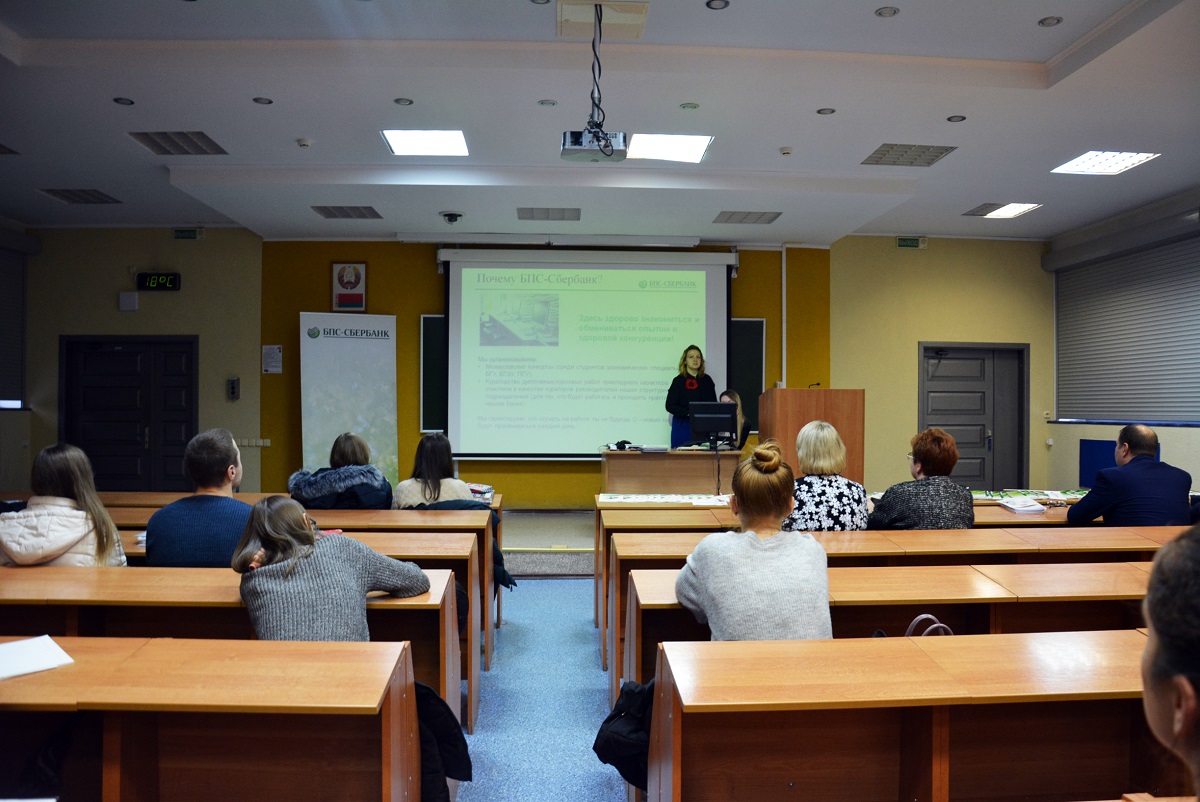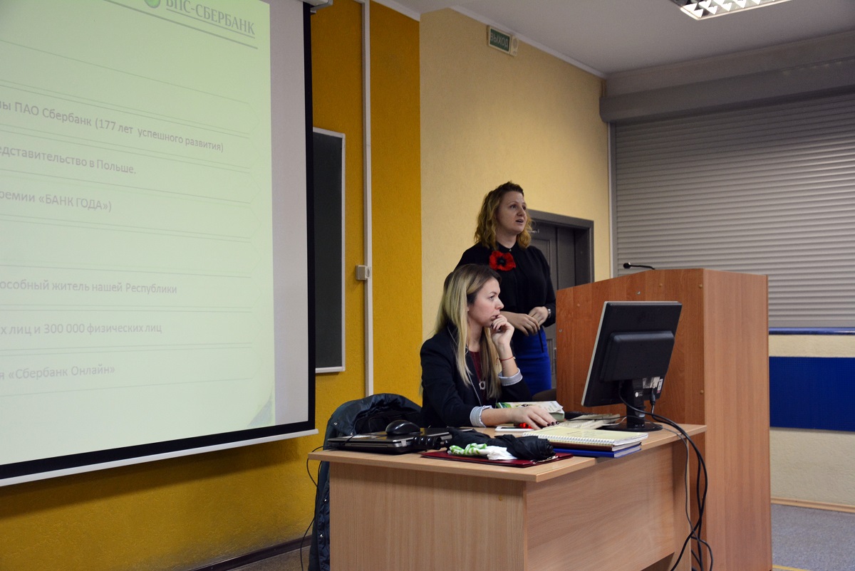 «Станьте частью команды надежного банка» – под таким девизом 15.11.2018г. прошла встреча представителей ОАО ”БПС-Сбербанк“ со студентами факультета банковского дела.