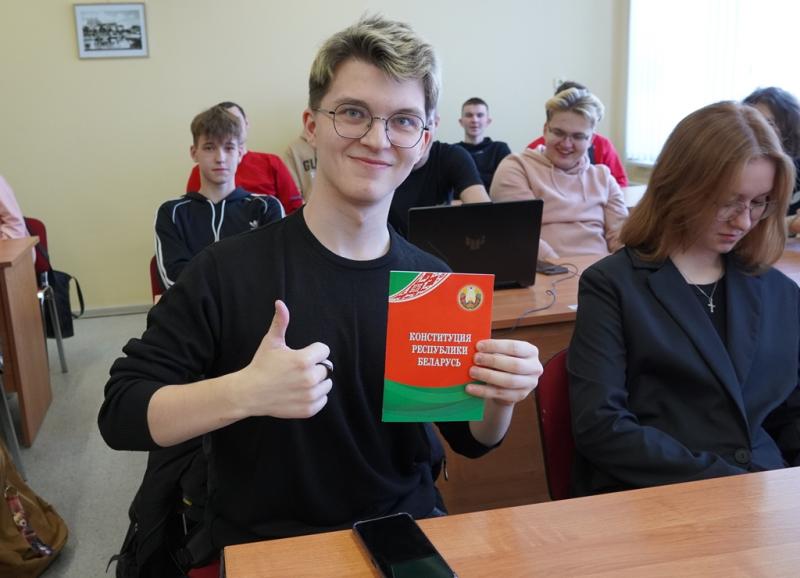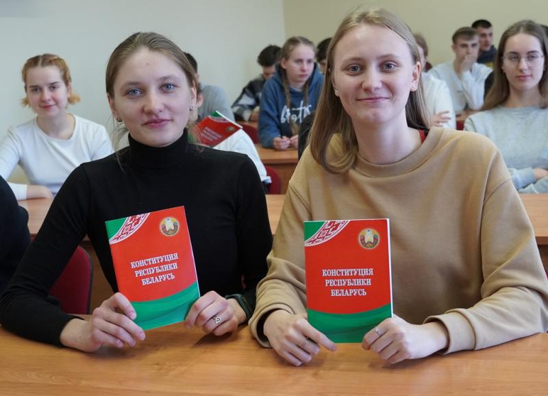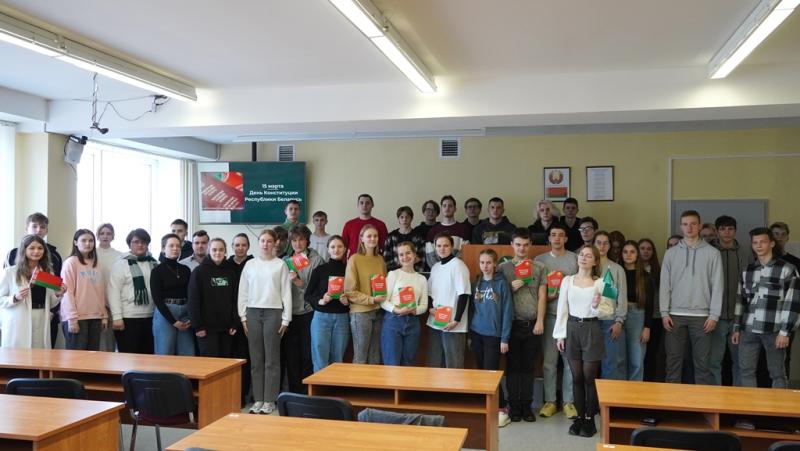 Студентам рассказали об основном законе нашей страны – Конституции Республики Беларусь, истории создания Основного закона страны. В конце беседы студенты прошли мини-викторину, а самые активные в качестве призов получили символические подарки.