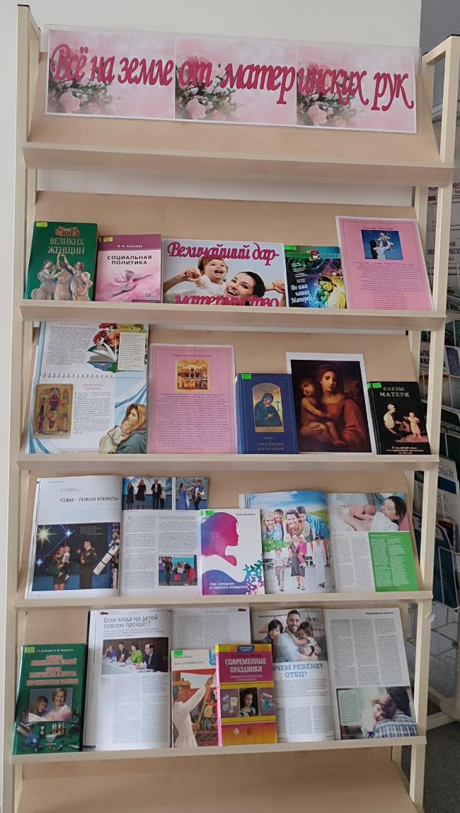 В Беларуси День матери празднуется 14 октября и совпадает с большим православным праздником – Покровом Пресвятой Богородицы. Ко Дню матери в читальном зале библиотеки (учебный корпус № 3, ул. Пушкина, 4, ауд. 3332) оформлена книжно-иллюстративная выставка «Все на земле от материнских рук». На выставке представлены разнообразные и увлекательные издания, посвященные этому светлому празднику. В судьбе каждого человека все самое доброе и святое связано с именем матери. Ее любовь и нежность рождает в нас желание умножать свое чувство доброты, дарить его людям и тем самым менять жизнь к лучшему.