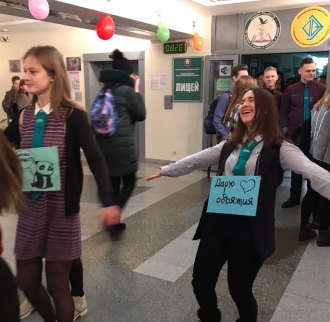 День в лицее начался с акции «Я дарю Вам свои объятия». В программе праздничного дня проведены конкурсы, викторина, разыгрывание ролевых ситуаций и теплые объятия.