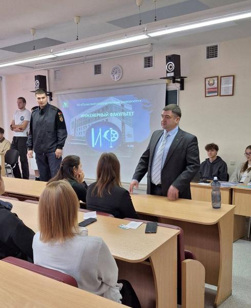 Декан инженерного факультета Астренков Андрей Валерьевич выступил перед гостями с информацией о перспективах обучения, особенностях поступления и профессиональных возможностях выпускников.