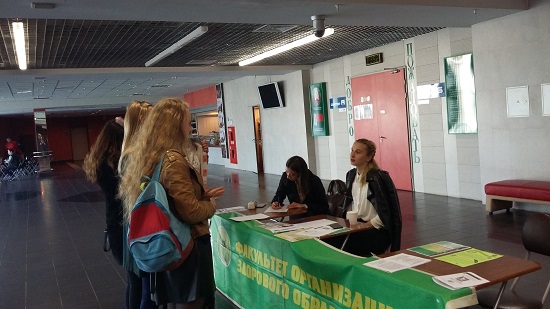 В этот день на базе спортивного комплекса университета состоялась встреча абитуриентов со студентами и преподавателями факультета. Обсуждались особенности обучения на разных специальностях факультета, профессиональная деятельность выпускников факультета.