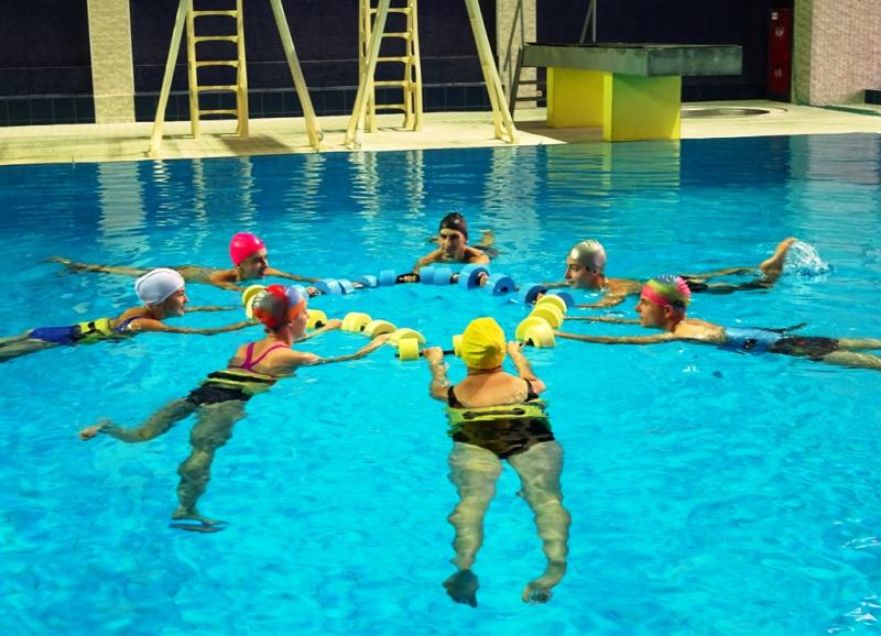 В бассейне спортивного комплекса прошла открытая силовая тренировка в воде «Aqua Power». Во время этого вида тренировки происходит общее укрепление организма, формируется красивое, подтянутое тело, укрепляются основные мышечные группы, происходит улучшение работы сердечно — сосудистой и дыхательной системы, развивается сила, выносливость, повышается координация движений.