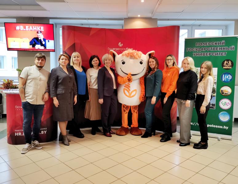 История взаимодействия Белагропромбанка и Полесского государственного университета насчитывает несколько десятков лет. Профильный полесский вуз всегда славился хорошей подготовкой кадров банковского сектора, что в свою очередь ценится работодателем. Именно поэтому 26 октября 2023 года в университете прошел день с Белагропромбанком. Начался он не так, как обычно, а с банковского экзамена. Проверить свои знания в области финансов и получить за правильный ответ памятный подарок студенты могли в рамках интерактива на промо-зоне Белагропромбанка, которая работала с самого утра в фойе университета. Студентов радостно встречал добродушный Агрик, транслируемые на экране видеоролики демонстрировали активную корпоративную жизнь банка и бенефиты для работников, а представители hr-службы готовы были ответить на любые вопросы.
