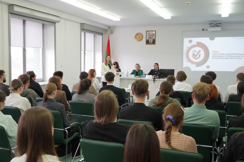 - адвокат юридической консультации Пинского района и г. Пинска Полякова Диана Михайловна ознакомила студенческую молодежь с гарантиями и компенсациями, предусмотренными для молодых специалистов в Республике Беларусь;