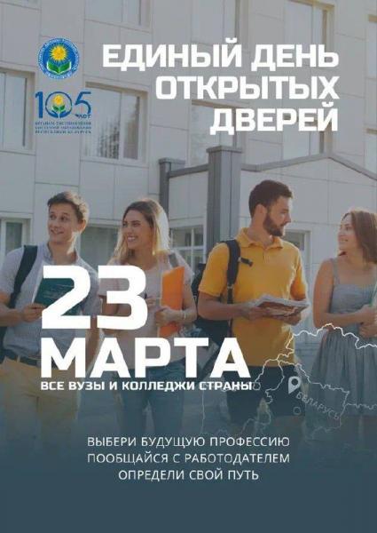 23 марта 2024 года во всех вузах и колледжах Беларуси будет проведен Единый день открытых дверей!