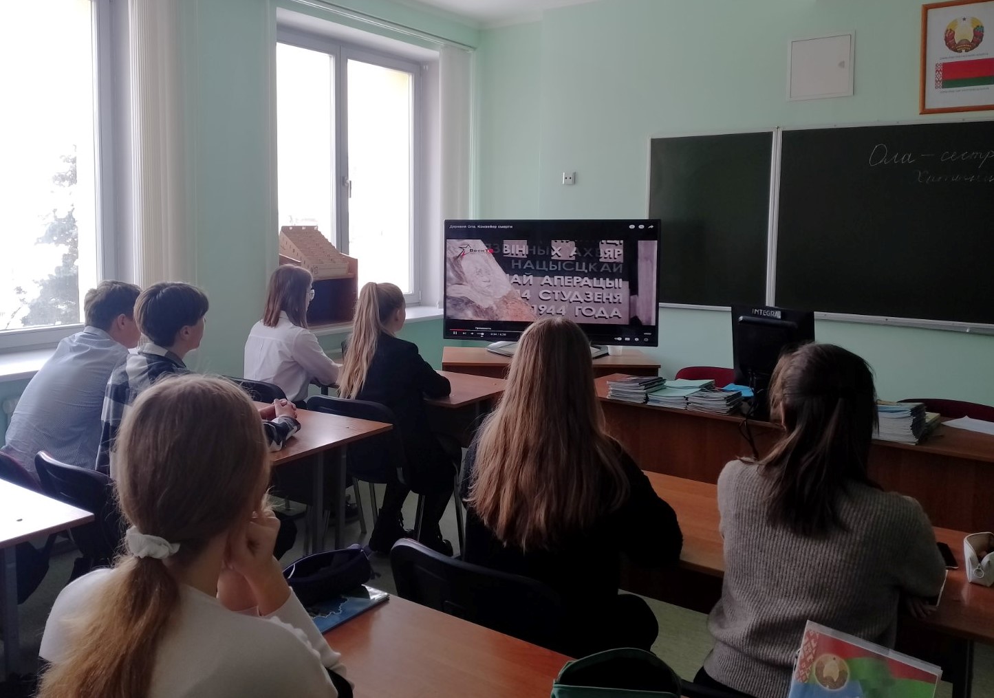 Для демонстрации масштаба злодеяний немецко-фашистских оккупантов ведущие продемонстрировали карту сожженных деревень на территории Беларуси (по материалам уголовного дела о геноциде белорусского народа). Учащиеся просмотрели и обсудили видеосюжеты о страшной трагедии д.Ола и увековечении памяти погибших.