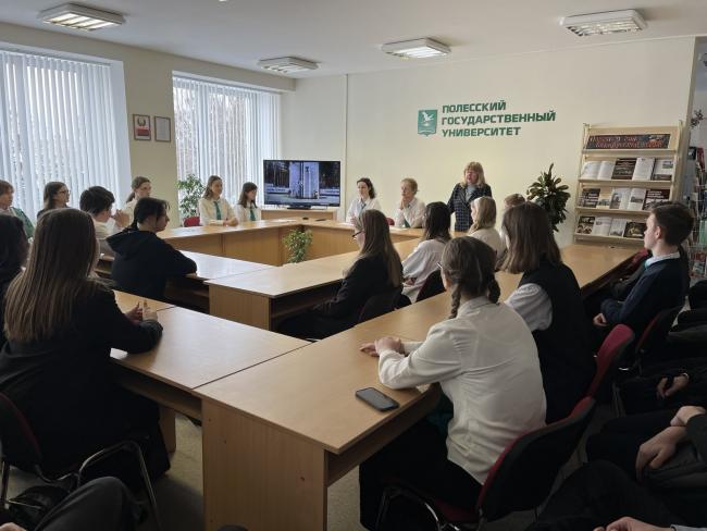 Один из уроков прошел в читальном зале библиотеки ПолесГУ, где была оформлена выставка книг, посвященная трагическим событиям Великой Отечественной войны.