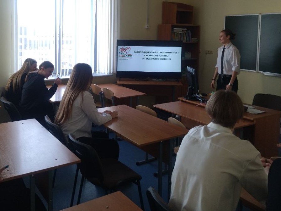 Особое внимание на уроке уделили и современности. Ребята обсуждали, как сегодняшние белорусские женщины успешно совмещают, казалось бы, несовместимые роли: они являются заботливыми матерями и женами, при этом реализуют себя в профессии и ведут активную общественную деятельность. Их неоценимый вклад в науку, культуру, производство и воспитание детей по праву считается основой процветания и прогресса всего белорусского общества.