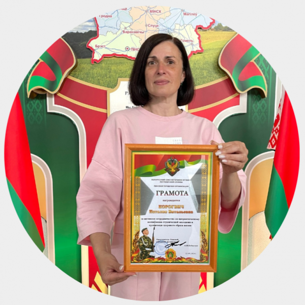 Декан факультета организации здорового образа жизни Маринич Татьяна Владимировна и заместитель декана факультета по воспитательной работе Корогвич Наталия Витальевна награждены Грамотами Пинской городской организации общественного объединения "Белорусский союз ветеранов органов пограничной службы" за работу по патриотическому воспитанию молодежи в рамках спортивно-патриотической площадки "Май Великий! Май Победный!", легкоатлетической эстафеты "Дороги судьбы - дороги Победы", посвященной 80-летию освобождения Беларуси от немецко-фашистских захватчиков. Грамоты вручил председатель организации, полковник в отставке Анатолий Николаевич Ксёндзык. |