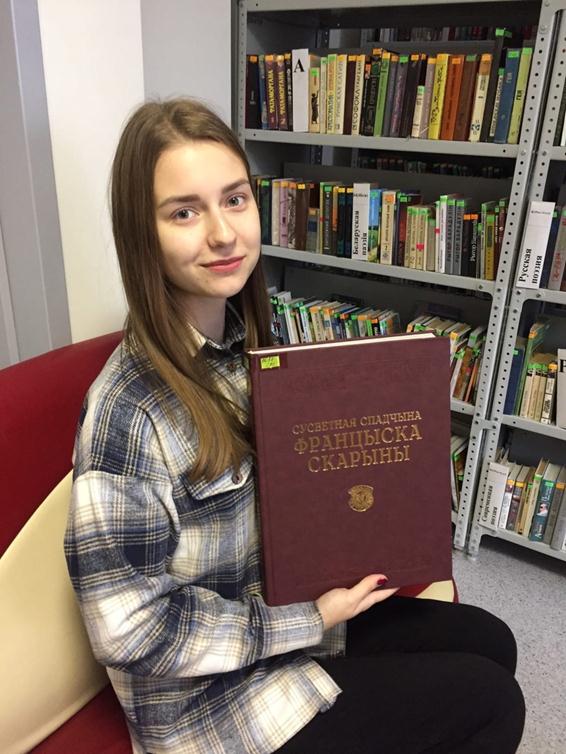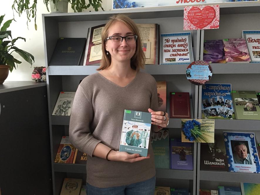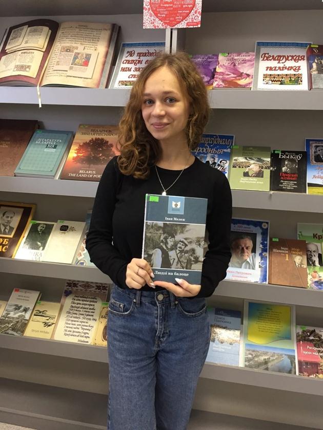 Дранчук Дар'я Ігараўна (група 21ФиК-2) з кнігай Iвана Шамякіна “Сэрца на далоні”;